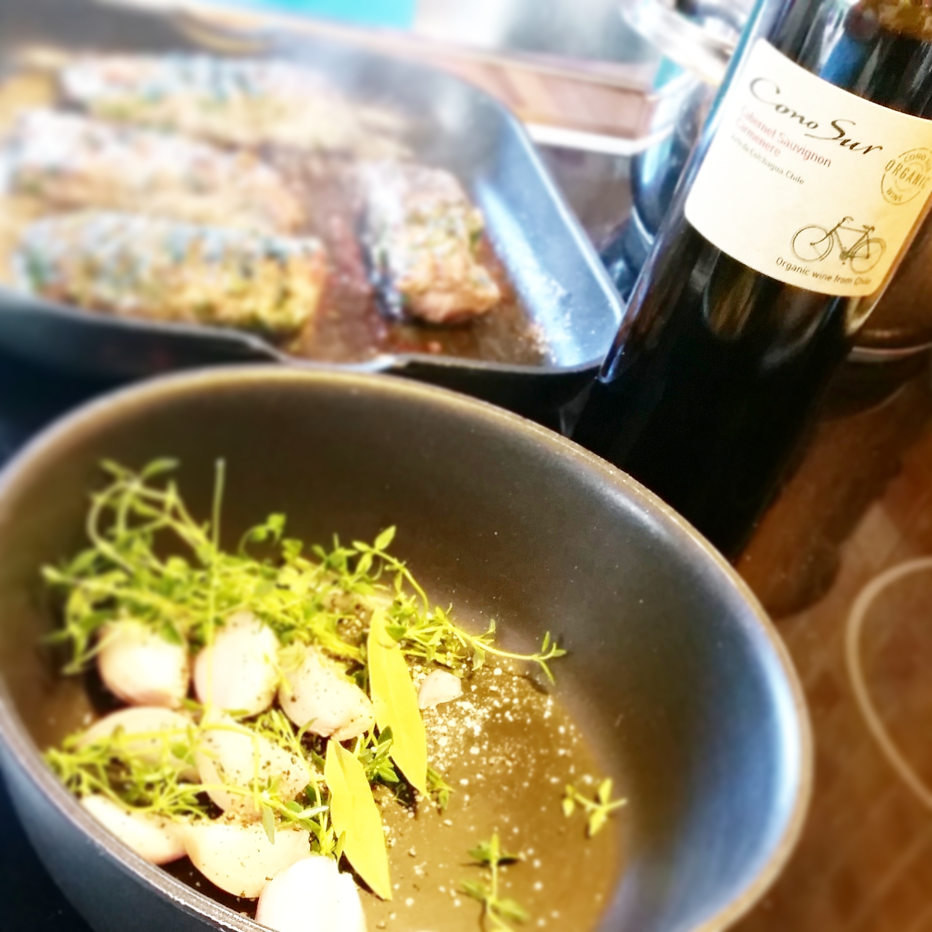 Men först ska receptet väljas ut och som svensk finalist tävla inför en jury i en deltävling i Paris… Jag valde att komponera min huvudrätt till Organic Cabernet sauvignon carmenere, ett ekologiskt vin som passar till lamm och nöt, eftersom vinet är ekologiskt har jag valt att köra i samma spår med lokalproducerat ekologiskt lammkött, ägg från hönorna på min brors gård och resten inköpt på saluhall, allt självfallet ekologiskt, rödvinssåsen gjordes även den på samma vin så smakerna gifter sig perfekt.