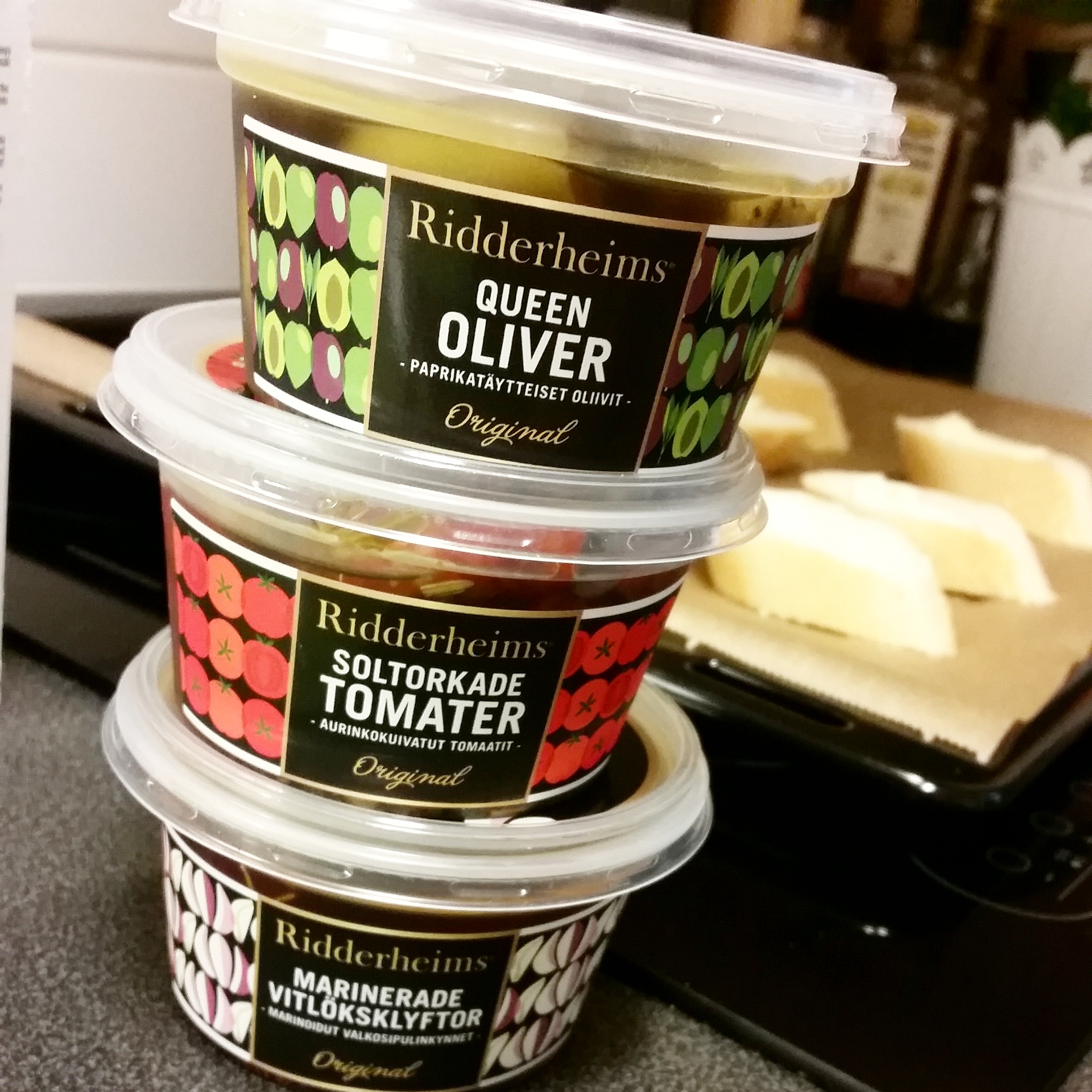 Plockmat med snittar Busenkel plockmat, färdig baguette i skivor, blanda riven mozzarella med soltorkade tomater, ugn 200 grader ca 10 min. MUMS! Ridderheims nya delikatesser gillades skarpt här i huset! 🙂 Föregående inläggNästa inlägg