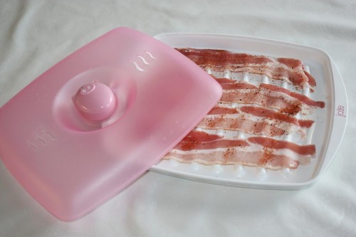 Måste bara tipsa om denna ”baconbricka” som är värt guld för oss LCHF:are, orka stå och stek bacon varje morgon… inte jag iaf! Men med denna bricka kastar du på 4 bacon, 3½ minut i micron = Krispiga bacon utan stekos! Finns hos Ninat Mat för en billig peng! (139 kr)