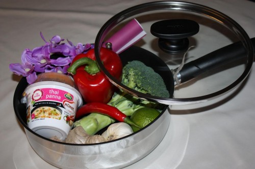 För ett par dagar sen knackade ett trevligt bud på dörren för att överlämna en panna full med godsaker, perfekt läge mitt i inspirationsbristen! Arla köket thaipanna är en nyhet där grädde finns i själva burken och ovanpå locket ligger en mindre burk med kryddpasta(röd chili, ingefära, kokosmjölk, limejuice, koriander & citrongräs) att röra ner i grytan. Väldigt snabblagat och smidigt att woka ihop lite grönsaker och sen röra ner burkarna! (Ca pris 20 kr) Har ni testat sånahär burkar?!