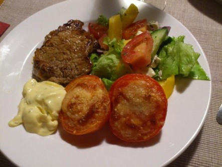 Igår åkte vi hem till en kompis för att laga mat & äta där… Ett teamarbete i köket resulterade i en god middag! Entrecóte med bearnaisesås, sallad & parmesantomater….