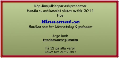 Just nu har Ninasmat massa juliga nyheter och smarriga delikatesser, jag kan dessutom erbjuda er en rabattkod som ger er ytterligare 5% rabatt hos dem så skynda in och kika!