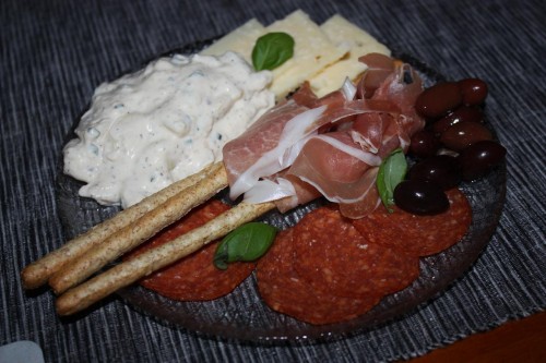 Igår kväll var det soff-häng som gällde, ”Sommaren med Göran” som film och lite småplock… Parmaskinka, Falbygdensost, mini oliver, chorizo, basilika, grissini och potatissallad….