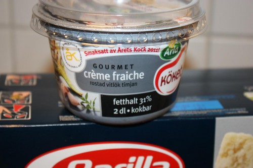 1 burk Arla kökets smaksatt creme fraiche (rostad vitlök & timjan)