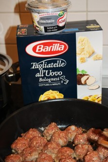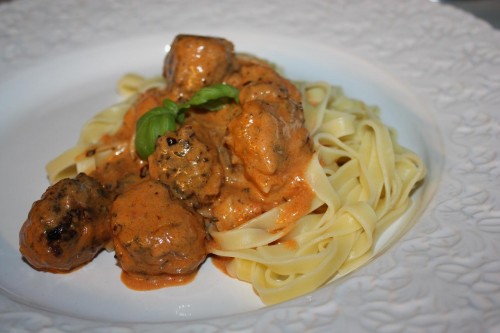 Det är en av favoriträtterna för tillfället, en riktig Lady & Lufsen måltid gör en glad! Köttbullar i en smarrig tomatsås, tillsammans med tagliatelle! Arla kökets smaksatta creme fraiche med rostad vitlök & timjan är den ”nya” ingridiensen som gör såsen såååå god!!!