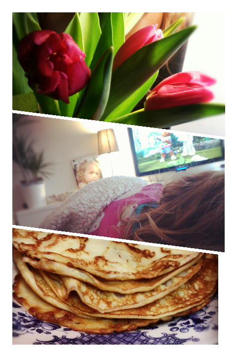 Blev plötsligt en dag på soffan hemma hos oss, Olivia vaknade ledsen med feber så efter en tur till doktorn och affären ligger vi nu på soffan med pannkisar i magen och bananer i pyjamas på tvn!