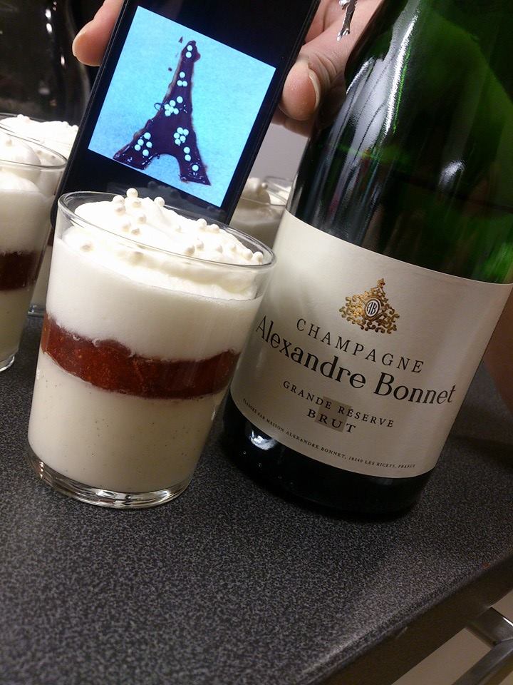 Mitt bidrag nummer 2 i tävlingen med Alexandre Bonnet! Tjejmiddag och kvällen till ära blev kvällens dessert ”New Year in Paris”, Eiffeltornet gjort i choklad, fyllt med bubblor i champagnets ära! Och visst skulle det passa utmärkt till nyårsdessert? 🙂
