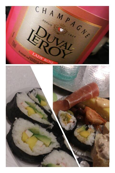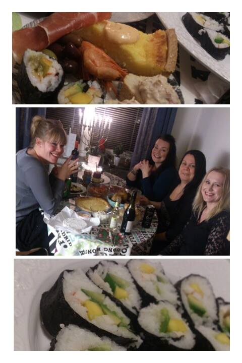 På gårdagens tjejmiddag körde vi knytkalas, alla tog med någonting och vips hade vi värsta buffén! Västerbottensostpaj, parmaskinka, oliver, brieost, baguetter med tonfiskröra, rökta räkor med chiliaioli, grillad kyckling, potatissallad… Själv bidrog jag med hemgjort sushi som var första gången jag försökt mig på, fyllde den med mango, avocado, gurka och crabsticks samt desserten som ni ser i inlägget under! Ett glas gott champagne till att skåla i! En kanonkväll med fina tjejer!