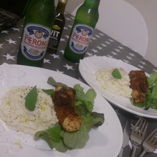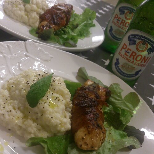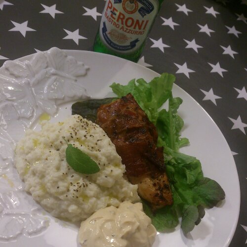 Parma – och salvialindad kyckling med tryffelblomkålsmos