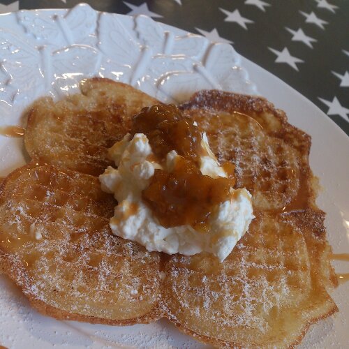 Våfflor med hjortronsylt och grädde