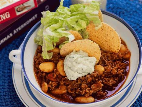 Cowboychili med guacamole och nachochips