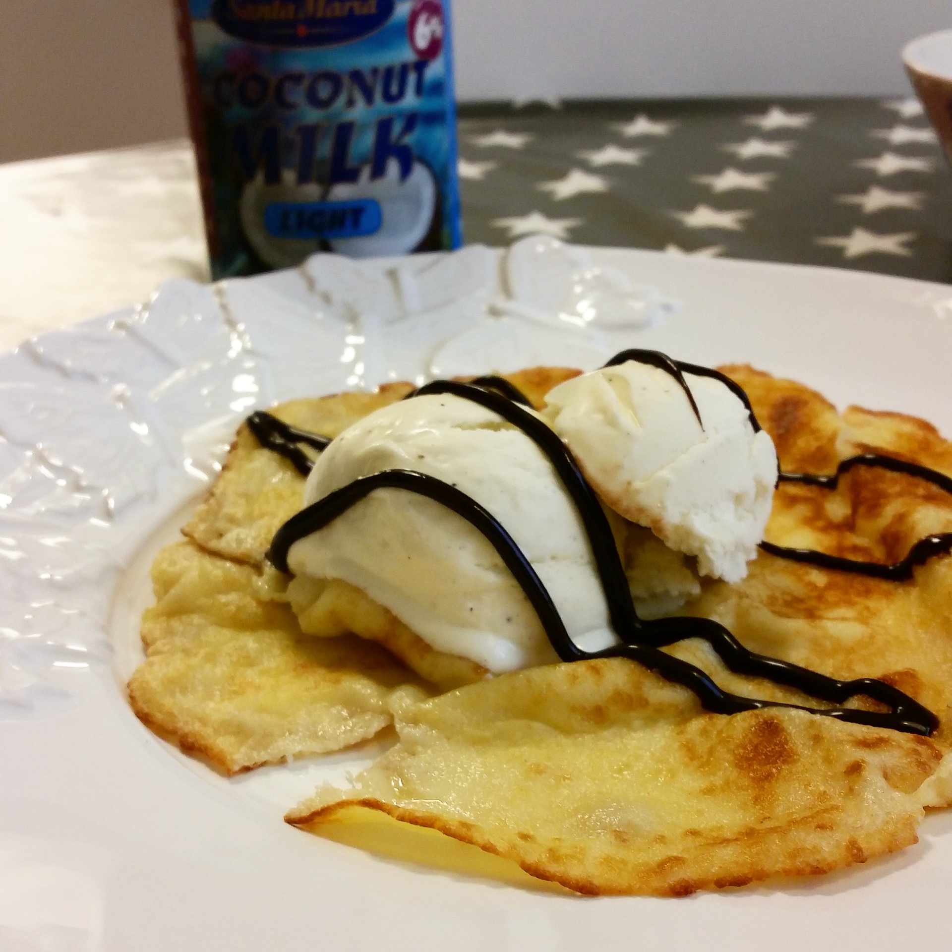 Hemma med en sjukling som har hög feber idag, att få henne äta är inte det enklaste, dock dricker hon bra! Tänkte att lite kokospannkakor med glass kunde locka henne och visst, lite gick ner! 🙂