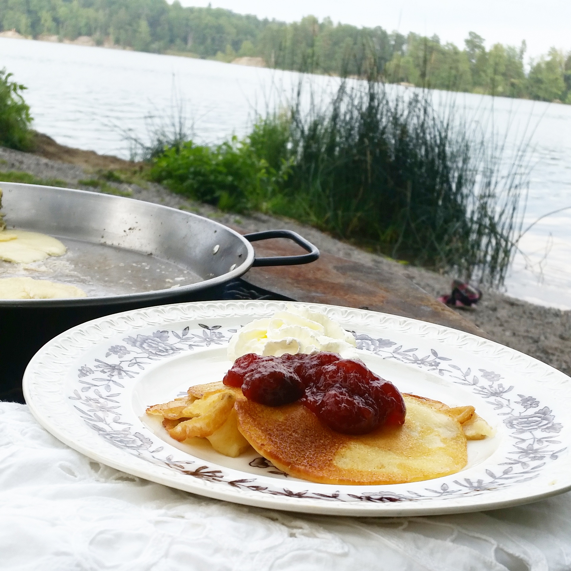 Köpte en muurikka när vi var i Finland som vi invigde på klipporna i Sundby Gård! Riktigt mysigt, barnen fiskade med mormor och morfar medan jag stekte pyttipanna och sen pannkakor över öppen eld! Vore perfekt om det inte hade varit för alla miljarder getingar som skulle dela stunden med oss, de är helt galna denna sommar?!