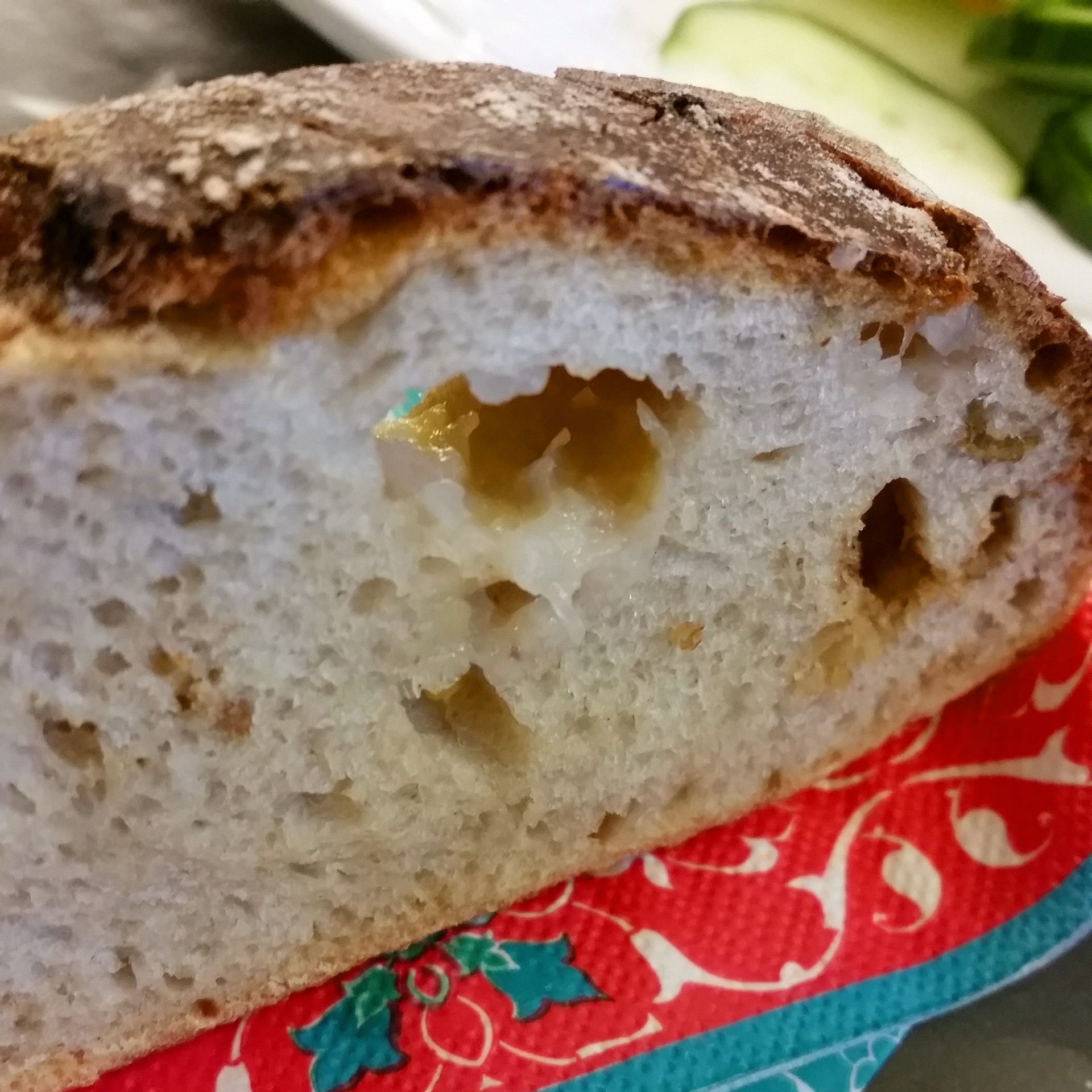 Svängde ihop ett enkelt bröd som fick stå över natten ( ca 12 h och kalljäsa i kylskåpet). Härligt krispigt på ytan och saftigt inne… Perfekt frukost för oss i sjukstugan och jag tror vi hittat ett nytt favoritbröd! 🙂