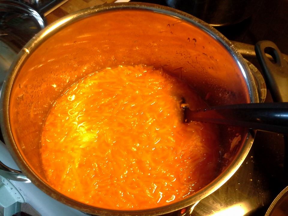 Koka alla ingredienser i 45 minuter, krydda med lite chili (eller cayennepeppar som min bror gjorde)