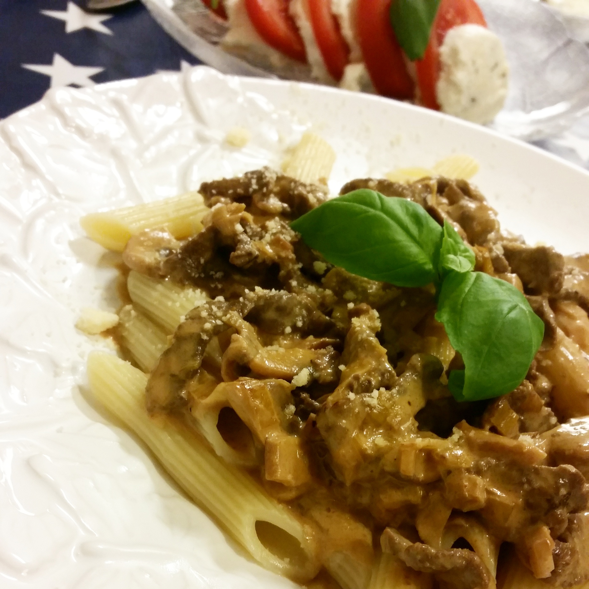 Krämig Pastasås med lövbiff, grädde,champinjoner & vittvin