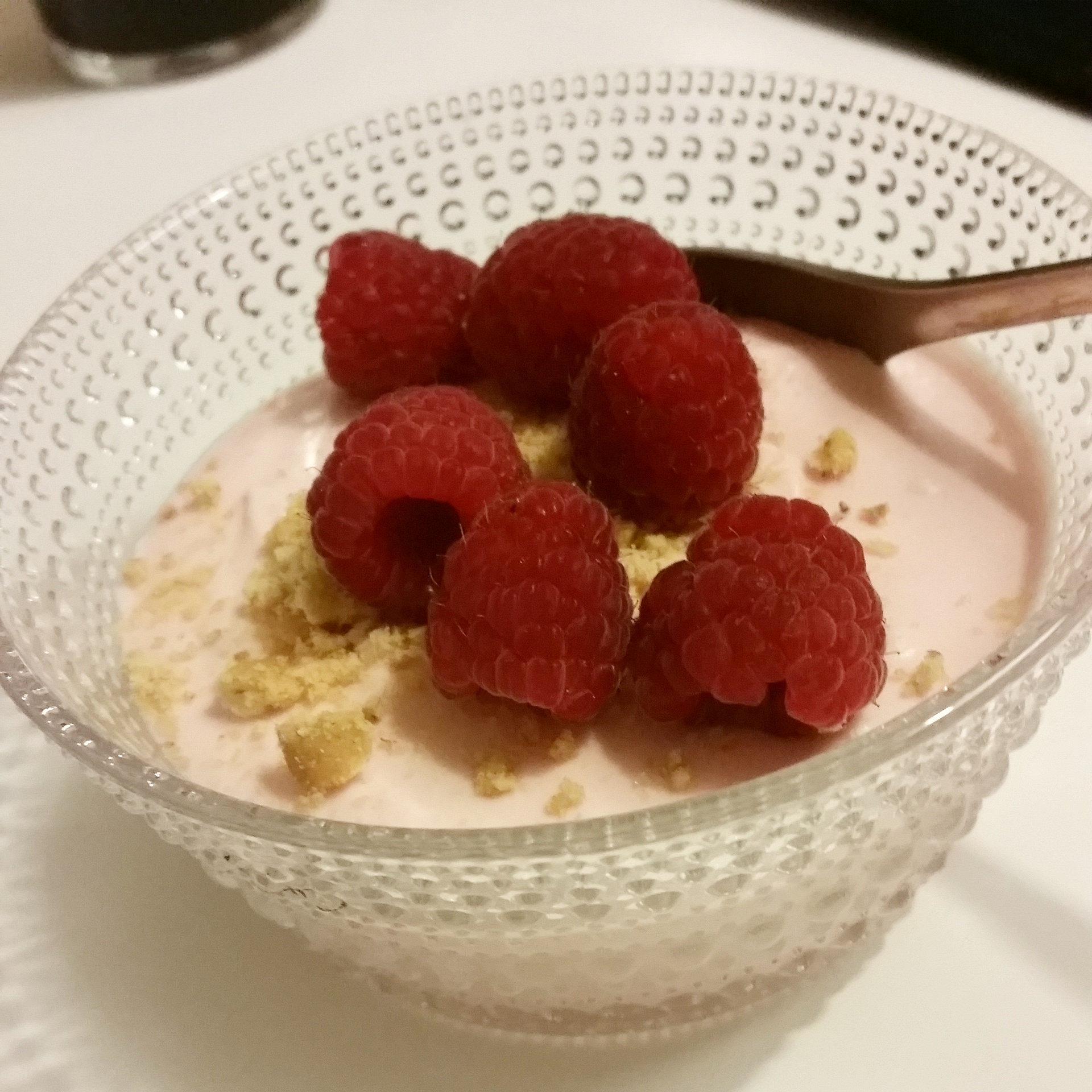 Var inte så sugen på någon Azerdessert så gjorde en vitchokladmousse med Hallon (Recept kommer), riktigt gott!