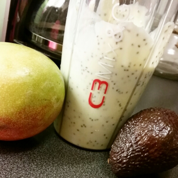 Vabbruari och avocadosmoothie med mango och chiafrö