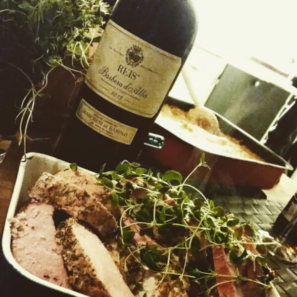 Varmrätt blev örtmarinerad helstekt fläskfile med potatisgratäng, whiskeysås, bearnaisesås, sallad och vitlöksbröd!