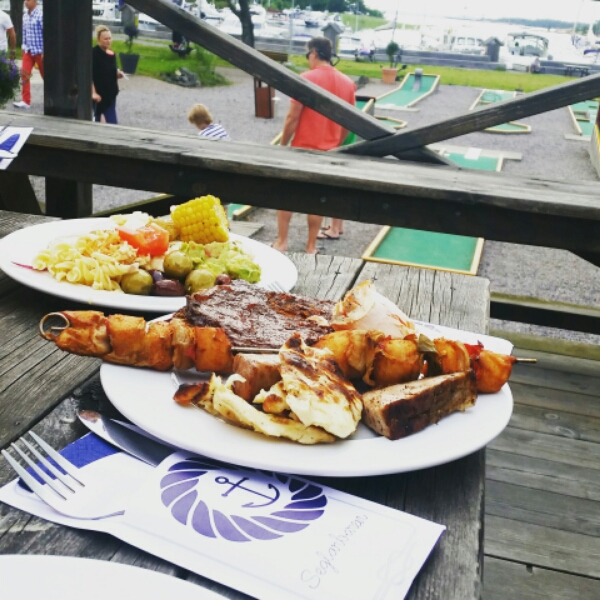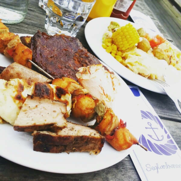 På seglarbaren åt vi deras grillbuffe som var väl investerade 255 kr..
