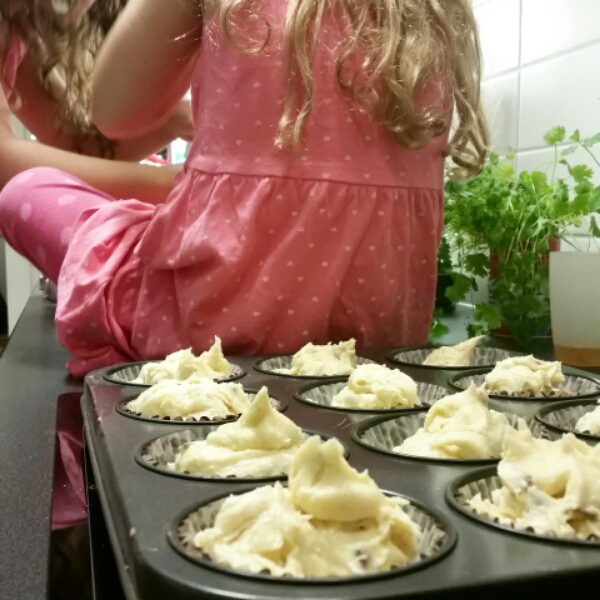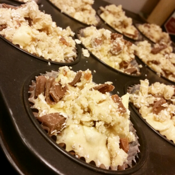 Vad passar bättre en regnig kväll än lite bakning med tjejerna?! 🙂 Smarriga daimmuffins med crumble fick det bli!