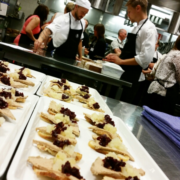 Kvällen inleddes med lite information och bubbel, sen vidare till köket och olika stationer där vi skulle färdigställa maten vi ska avnjuta, sen lite information ifrån Cono sur (Spring Wine & Spirits) om vinerna och vingården, sist avnjöts mat med fint kombinerade viner! En toppenkväll helt enkelt! 🙂