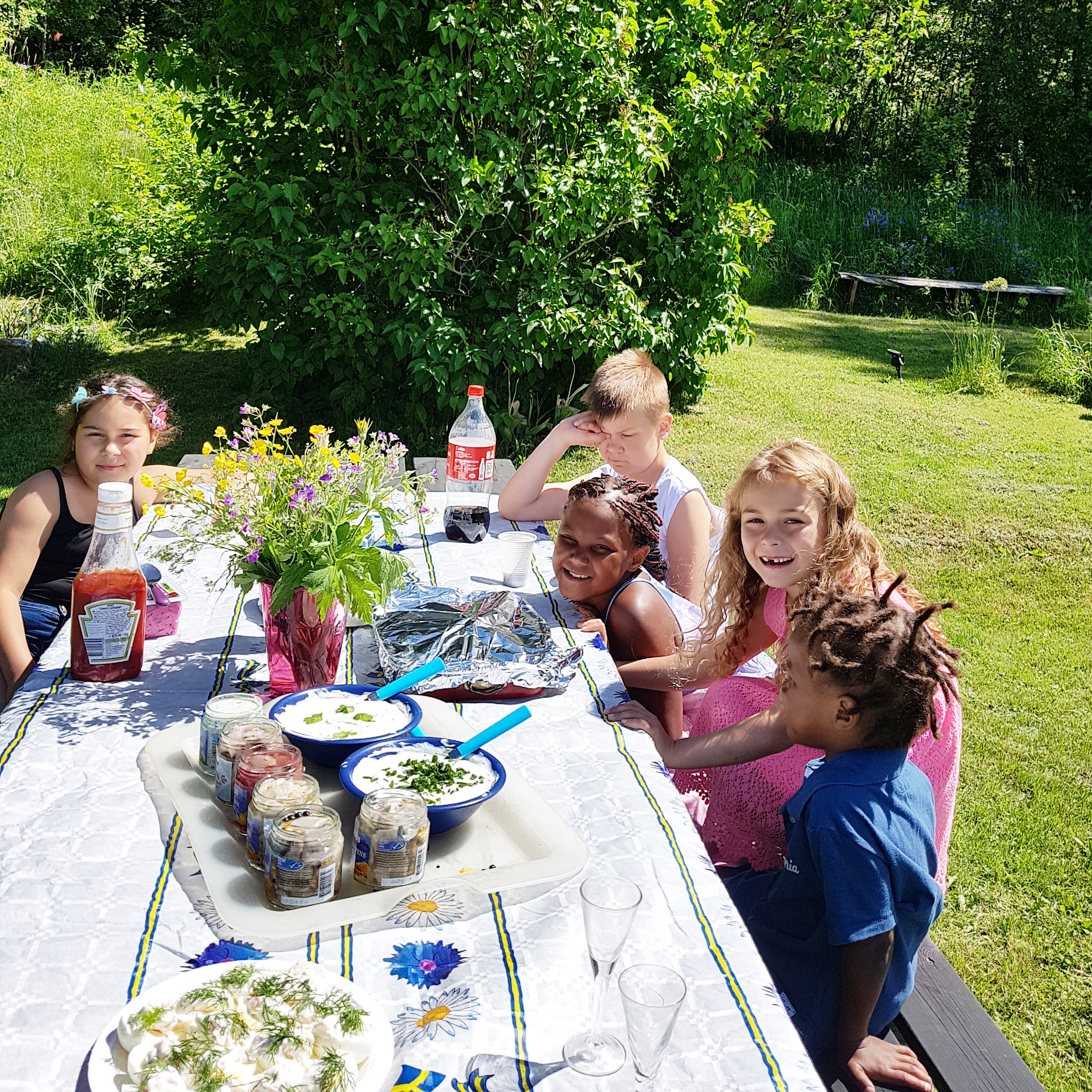 Vi hade en väldigt fin midsommar ute i Rimbo tillsammans med bonusfamiljen! Massa mat med fina människor och till fikat hade Emmis gjort en smarrig midsommartårta med jordgubbar och hallon! Perfekt för större middagar och bufféer.