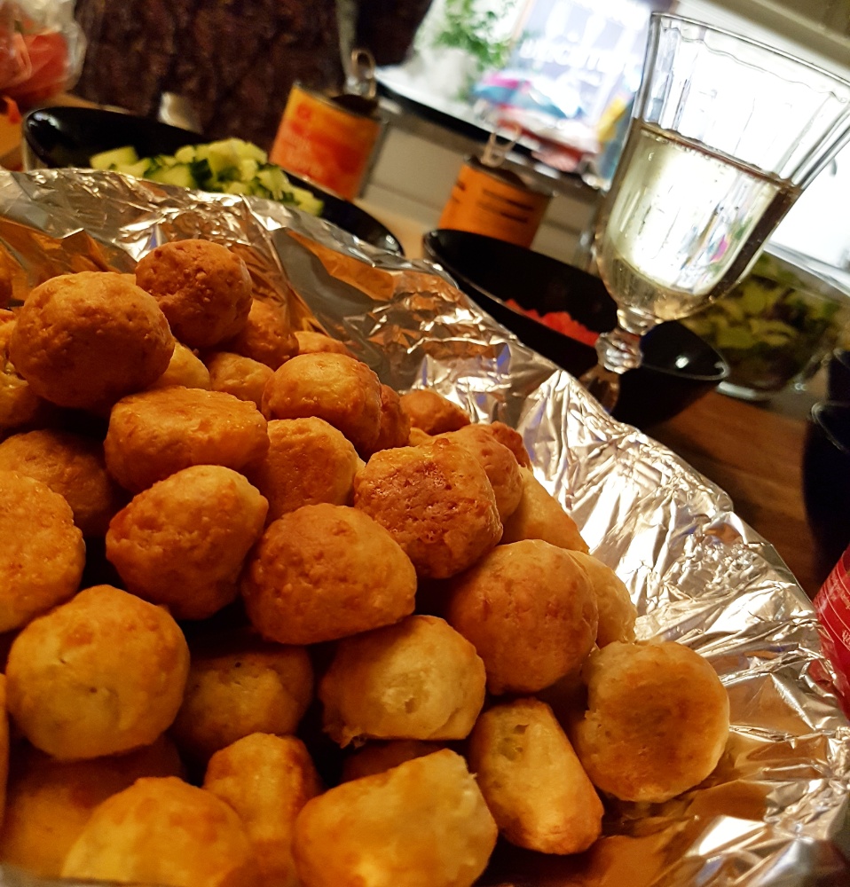 I helgen var vi bortbjudna till några vänner där vi blev bjudna på ostbollar fyllda med oliver. OMG såååå goda! 😀 Sen blev det gott bubbel, tacos och avslutades i badtunnan!