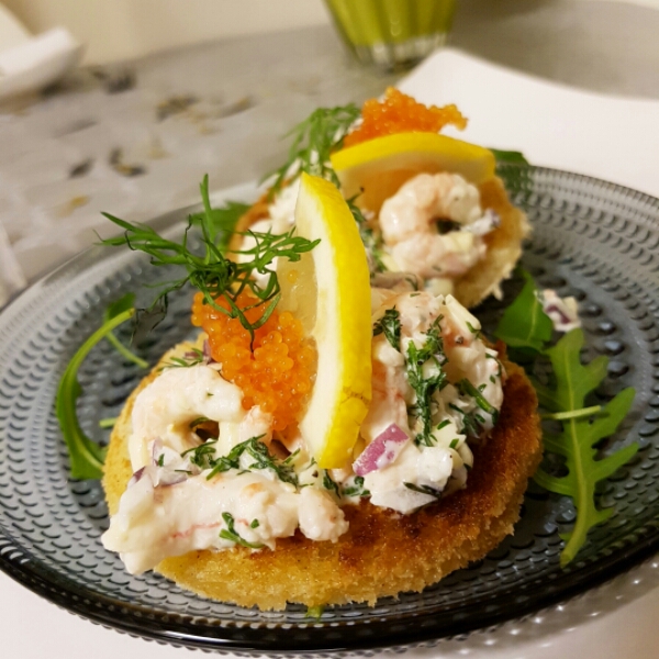 Toast skagen med creme fraiche och majonäs