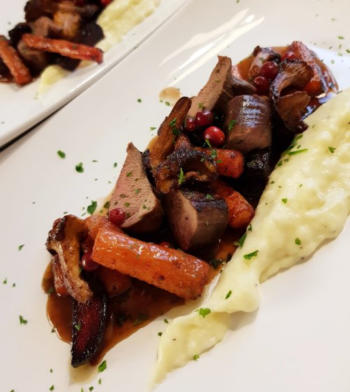 Rådjursfilé med palsternackspuré och rödvinssås