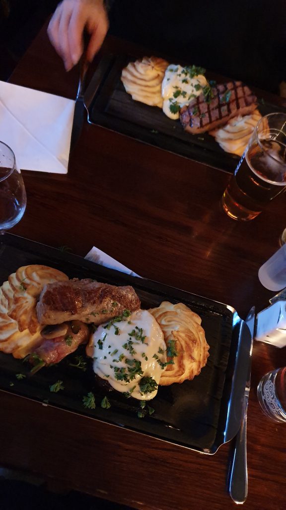 Idag befinner ni er i det Hellgrenska Palatset vilket byggdes 1866. Högre upp låg noblessens våningar där även kung Oscar II har superat. Den gröne Jägaren är även ett kännt tillhåll för alla sköna Bajensystrar och bröder som vill ha lite förfriskning innan matcherna. Jag och fraun (Minna) testade nu senast på deras förnyade meny som inte var helt fy skam. Förrätten med Friterad halloumi, whiskeyhonung och rödlöksmarmelad hade jag kunna äta som varmrätt flera dagar i veckan! 😀
