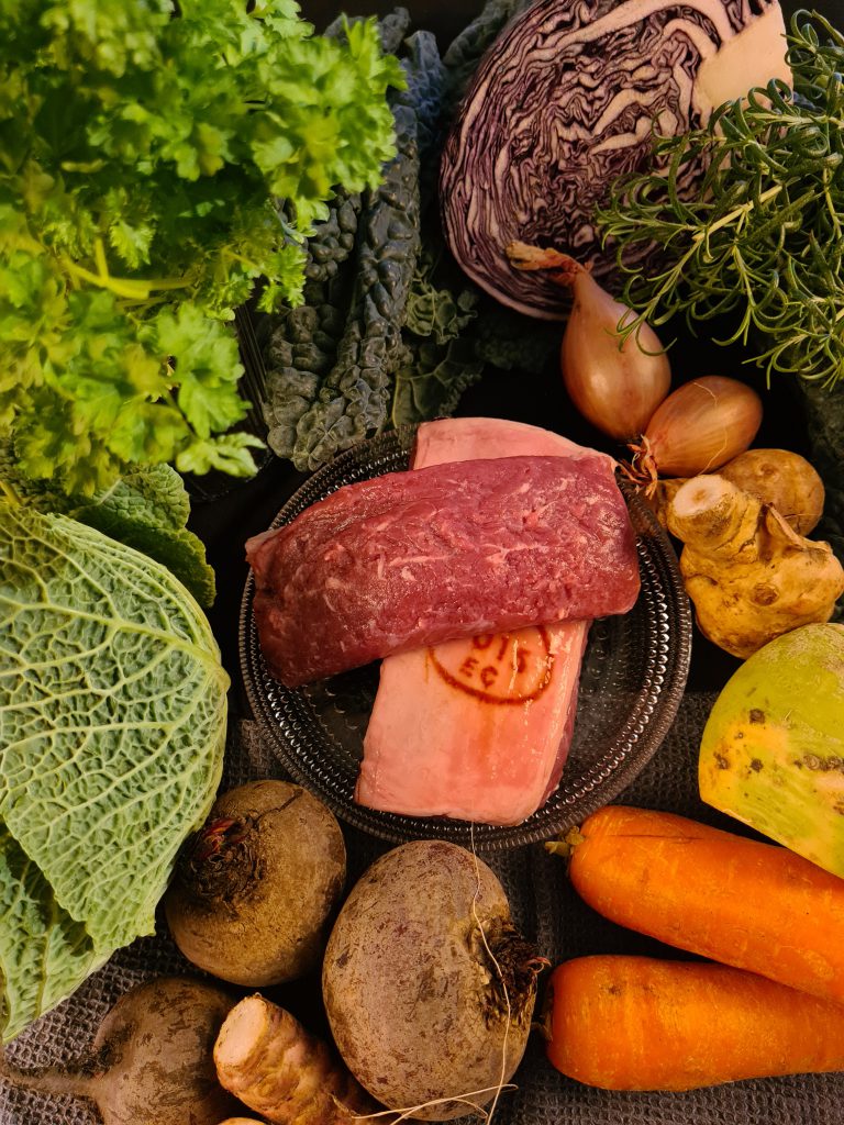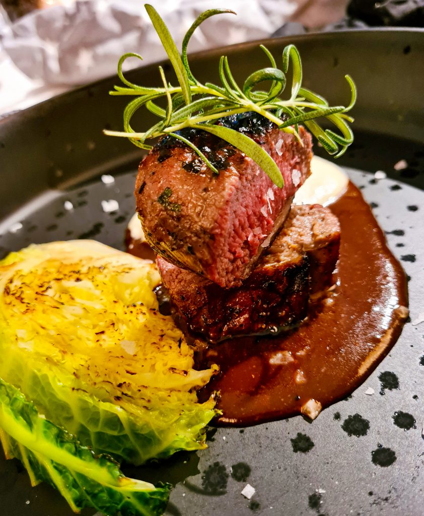 Lammytterfilé med rödvinssås, jordärtskockspuré och sotad savoykål