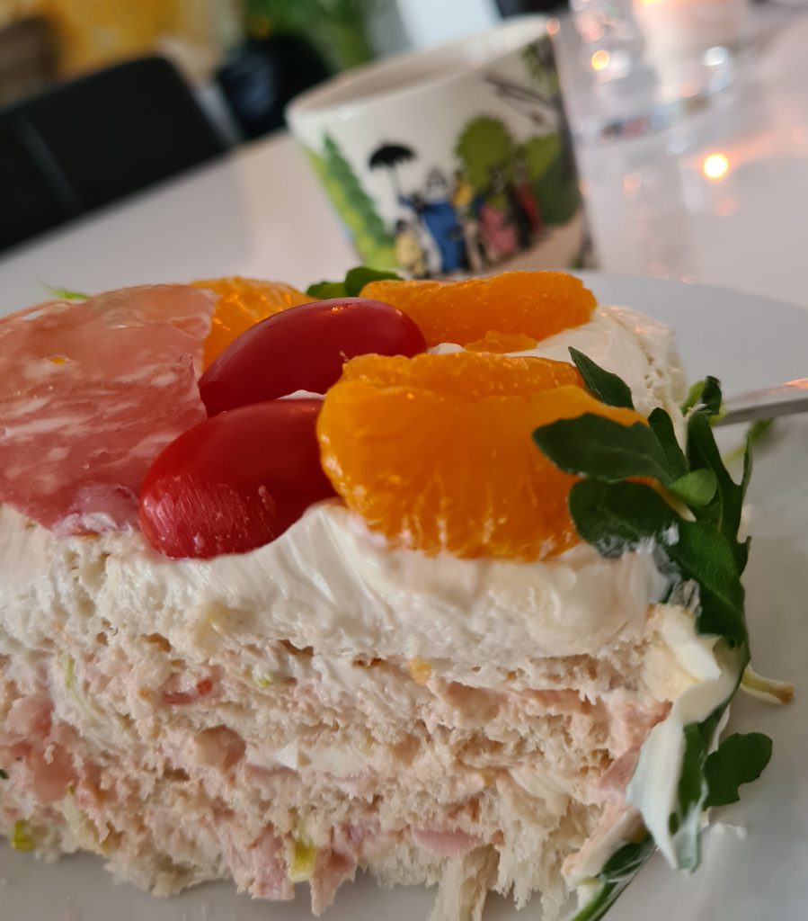 Det visade sig vara svårt att hitta ett gott recept på smörgåstårta med skinka men utan leverpastej. Det resulterade i denna otroligt goda fyllning! Enkelt med samma fyllning i alla 3 lager!