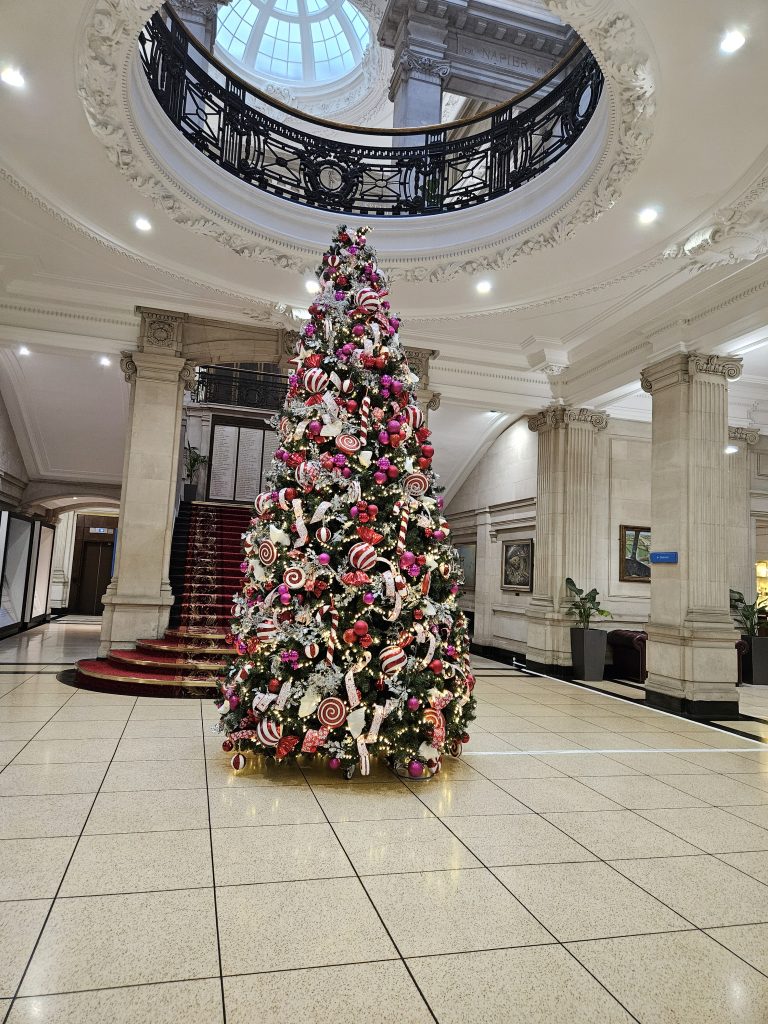 En otroligt juldekorerad stad men otroligt mycket folk! Vi tog flyg till Stansted och därifrån är det enklast att ta sig med Stansted express tåg som tog ungefär 45 minuter till Liverpool station (Kostade ca 400 kr tur och retur per person).